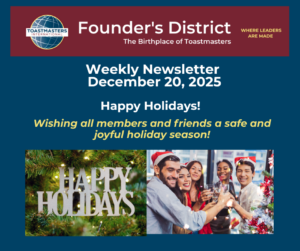 Located in beautiful Southern California, Founder’s District is the birthplace of Toastmasters International, serving clubs in Orange County since 1944.