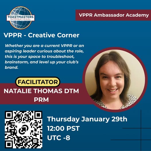 Let’s work together to get your club’s PR activities on track to becoming Distinguished by June 30. Bring your questions to the VPPR Creative Corner!
